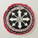 Round throw pillow with VooDoo symbols, in red and black. Very unique!