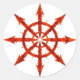 The Chaos star is a spoked device with eight equidistant arrows radiating from a central point. It was originally devised by the fantasy novelist Michael Moorcock as a symbol of chaos (infinite possibility). The Chaos wheel has been adopted as a symbol of Chaos magick. The current rounded shape was devised by author and chaos magician Peter Carroll.