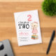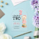Chapter Two Teddy Bear Books Girl 2nd Birthday. Easily personalise the words as required. With a cute teddy bear holding a balloon and standing on a stack of books illustration.