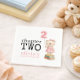 Chapter Two Teddy Bear Books Girl 2nd Birthday. Easily personalise the words as required. With a cute teddy bear holding a balloon and standing on a stack of books illustration.