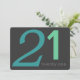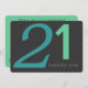 Big blue and mint green numbers that you can customise to read whatever age you want on a charcoal grey background on front, a mint green back with charcoal text that you can easily customise with your birthday party information on back. This easy to customise birthday invitation is great for any age from 21st to 30th birthday, 40th birthday, 50th birthday, right up to the 99th birthday!