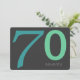 Big blue and mint green numbers that you can customise to read whatever age you want on a charcoal grey background on front, a mint green back with charcoal text that you can easily customise with your birthday party information on back. This easy to customise birthday invitation is great for any age from 21st to 30th birthday, 40th birthday, 50th birthday, right up to the 99th birthday!