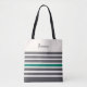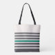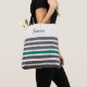 Charcoal and green modern stripes custom name tote bag