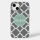 Charcoal and Mint Quatrefoil Pattern Monogram Case-Mate iPhone Case