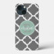 Charcoal and Mint Quatrefoil Pattern Monogram Case-Mate iPhone Case
