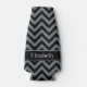 Black and Charcoal Grey Large Chevron Zig Zag Pattern, Black Ribbon Name Monogram Label