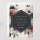 A dramatic bloom arrangement with rich charcoal and soft cream petals creates a sophisticated, moody atmosphere. Lush foliage in deep gray adds depth to the opulent floral composition. Evokes a sense of elegant romance.