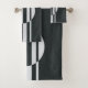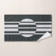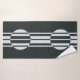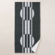 A retro abstract mod style pattern in charcoal gray and white hammered finish featuring circles and stripes in alternating colors.