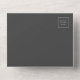 The left-hand edge of this elegant modern all-in-one wedding invitation and RSVP features a silver faux glitter border. The customizable text combines silver gray whimsical handwriting, copperplate and italic fonts on a charcoal gray background. The return address appears on the outside flap and the reverse side of the detachable RSVP card in silver gray text on solid charcoal gray. A QR code is included on the RSVP card for guests who would prefer to reply online.