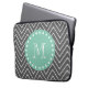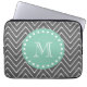 Charcoal Grey Chevron Pattern | Mint Green Monogra Laptop Sleeve