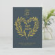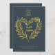 Set the tone for your wedding with this modern and luxurious Save the Date card, featuring a charcoal grey background paired with pale gold accents in an elegant laurel heart design. The refined combination of dark grey and subtle gold creates a sophisticated and timeless feel, perfect for weddings with a formal or minimalist theme. The fully customisable template allows you to personalise names, date, and location details to suit your event. This design offers a sleek yet elegant presentation, ideal for couples seeking a modern, understated aesthetic for their wedding announcement.