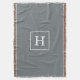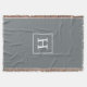 Charcoal Grey White Framed Initial Monogram Throw Blanket