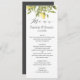 Elegant and romantic , this wedding dinner menu card design features a frame of watercolor olive green and yellow lemons and foliage.