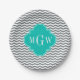 Charcoal Thin Chevron Teal Quatrefoil 3 Monogram Paper Plate