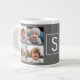 Charcoal White 8 Photo Collage Custom Monogram Large Coffee Mug