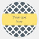 Charcoal, White and Yellow Quatrefoil Pattern Classic Round Sticker
