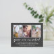 Beautiful wedding invitation postcard with room for three of your most romantic photos! You are invited is written in a lovely white calligraphy script against a dark grey background with a faint marble look. Also add your names, wedding date and time, and on the back, a more information about where the wedding is held or your wedding website, and anything else you might want to tell your guests.