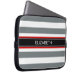 Charcoal Wht Horiz Stripe Black Red Name Monogram Laptop Sleeve