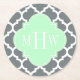 Charcoal, Wht Moroccan #5 Mint 3 Initial Monogram Round Paper Coaster