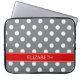 Charcoal Wht Polka Dots #2 Red Name Monogram Laptop Sleeve