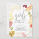 Invite friends for a wine and cheese girls' night out (or in!) with these casual chic invitations. Design features your celebration details in modern lettering, surrounded by illustrations of cheeses, meats, bread and fruit.