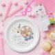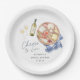 Personalise your wine and cheese party or bridal shower with these casual elegant custom paper plates. Design features watercolor illustrations of a charcuterie board filled with cheese, meat, and fruit, alongside a bottle of white wine and two glasses. "Cheers to Love" appears beneath in handwritten script lettering. Personalise the bottle of wine with an initial for a special touch, and add two lines of custom text for your event name and date, or choice of customisation.