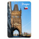 Old tower at one end of Charles bridge in early morning - Prague, Czech Republic. View on the bridge, the castle and st. Nicholas church.
