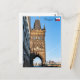Old tower at one end of Charles bridge in early morning - Prague, Czech Republic. View on the bridge, the castle and st. Nicholas church.