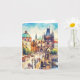 This greeting card features a watercolor portrait of the Charles Bridge in Prague, Czech Republic.