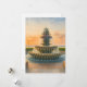 Charleston Pineapple Fountain Watercolor Sunset Holiday Card
