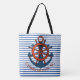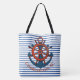 Charleston, SC Ship's Wheel and Anchor Striped Tote Bag