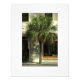 In this photo print, a summer street scene in historic Charleston, South Carolina. A Palmetto tree casts dapple shade on a restaurant facade with a sign to beckon over heated tourists, "Cool Inside". White table cloths can just barely be glimpsed through the window. NOTE: This image has a wide white border.