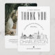 A special thank you flat card tailored to your wedding in the beautiful city of Charleston, South Carolina. It features a stylised skyline of the city on the front of the card. On the inside is a spot for your own unique message and an optional photo. Use the customisation functions to change the photo filter to colour, and to resize it as need. All elements of this item are unlocked and adjustable, so have fun being creative!