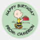 Charlie Brown with Snoopy's Dish | Happy Birthday Classic Round Sticker