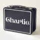 What really makes this lunchbox shine is the personalised name—Charlie—printed right across the front in a bold, white modern font that pops against the metal background. It’s crisp, clean, and unmistakably theirs. No more lunch mix-ups or forgotten containers—this personalised lunch pail is clearly made just for Charlie. The font is contemporary, easy to read, and fun, giving the whole design a fresh, current look that works well for all ages. Whether Charlie is in elementary school, high school, college, or the working world, this lunchbox feels right at home and totally in style.
