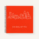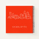 This design features a hand drawn sketch of the Charlotte skyline on a purple background.