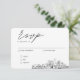 Classic minimalist script wedding RSVP enclosure card personalised with your information. Enter the Zazzle design tool for further customisation such as text placement or to add a fourth meal option. Be sure to compare the different paper types to select your favourite texture and check the full collection to purchase matching mailing envelopes.