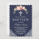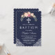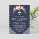 Charm Blush Pink Flowers Lace Navy Baptism Invitation