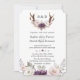 Charm Lavender Pink Floral Antlers Wedding Invitation