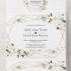 ALL IN ONE invitation. By including the details and RSVP on the wedding invitation instead of on a separate cards it's a good choice. Unique card design featuring watercolour white magnolia, airy leaves, faux gold shape, modern calligraphy, on a white background. Use Personalise tool to add your info. For matching items, please, visit my Magnolia White Floral Collection.