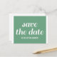 Charm Save the Date Postcard in green and white with a whimsical typography design. This trendy and modern save the date postcard is easy to customise with your wedding details. For more customisation options, click on the Customise It button.