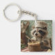 Charming and Cute Raccoon Chef Stirring a Bowl Key Ring