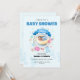 This delightful baby shower invitation features a serene pastel blue background, adorned with playful baby-themed graphics, including bottles, clothes, and toys. At the centre, a sleeping newborn nestled on a crescent moon captures the heartwarming essence of the occasion. The invitation provides all essential details in a clean, easy-to-read font. Perfect for celebrating the upcoming arrival with friends and family, this invitation combines cuteness with elegance to set the perfect tone for the event.