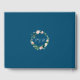 Elegant card design featuring watercolour pink blush cream flowers and green leaves corners, faux gold frame, floral divider, on ocean blue background. On the back white flowers wreath and initials. Use Personalise tool to add your info, change fonts, font's colours. For matching items, please, visit my Unique Blush Flowers Collection.