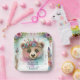 Serve your party treats on these adorable bear-themed paper plates! Featuring a whimsical watercolor bear with a floral crown, surrounded by colourful feathers, these plates are both functional and festive. Ideal for nature-loving party guests and fans of fantasy, these plates will make your celebration memorable.