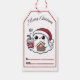 A delightful Christmas tag showcases a cheerful ghost wearing a Santa hat. It holds a cup of hot cocoa and a gingerbread house, perfect for holiday gifting.