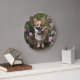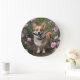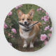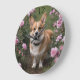 "Charming Companion: A Corgi in a Pink Rose Garden Large Clock