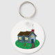 Charming Blue House Pet Friends Keychain. Keep your keys organized with this cute keychain featuring the whimsical cartoon cottage design. The illustration clearly shows the blue house, the happy dog in the garden, and the cat in the window. This small accessory is perfect for adding a touch of personal charm to your key set, backpack, or purse. An affordable and thoughtful gift for housewarming, pet owners, or anyone who appreciates sweet, miniature artwork. Never lose your keys with this easily identifiable home sweet home design.