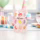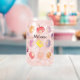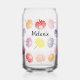 Charming custom can glass with Zinnia flower print. Colourful summer floral mix design. Customisable background and flower colours. Beautiful floral cover. Pink, purple, red, yellow, green, white and orange colours. Personalise with custom text or name. Trendy design with popular Zinnia flower. Great for plant lover, florist or gardener. Fun for wedding party, Birthday and more.