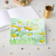 Lush meadows of charming daisies form the front and back. The golden yellow of the flowers' centres burnished to gold are in an easy-to-read, flowy font for the names of the couple, the honoree, or the business as these cheerful flowers are very adaptable.